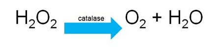 Reaksi Kimia antara enzim katalase dengan H2O2 adalah sebagai berikut: